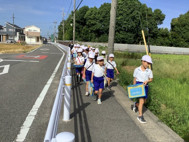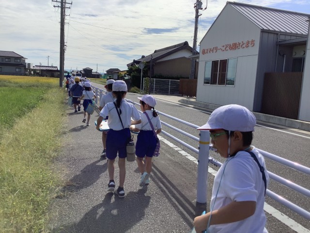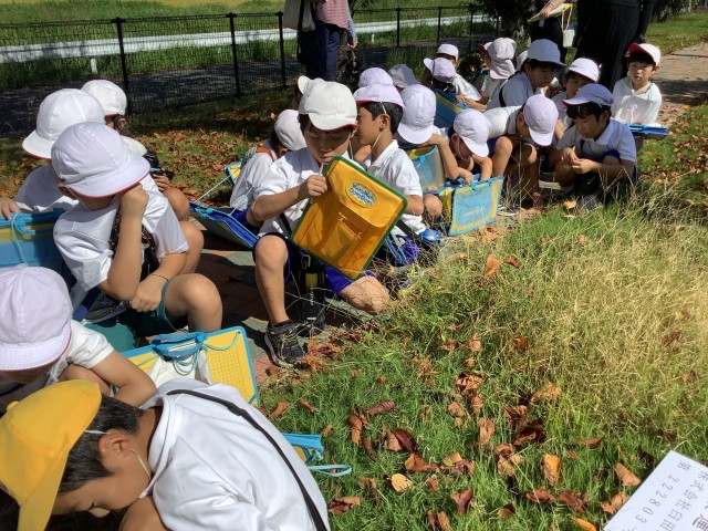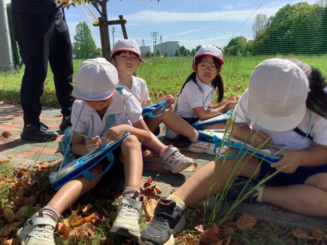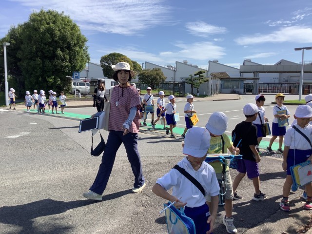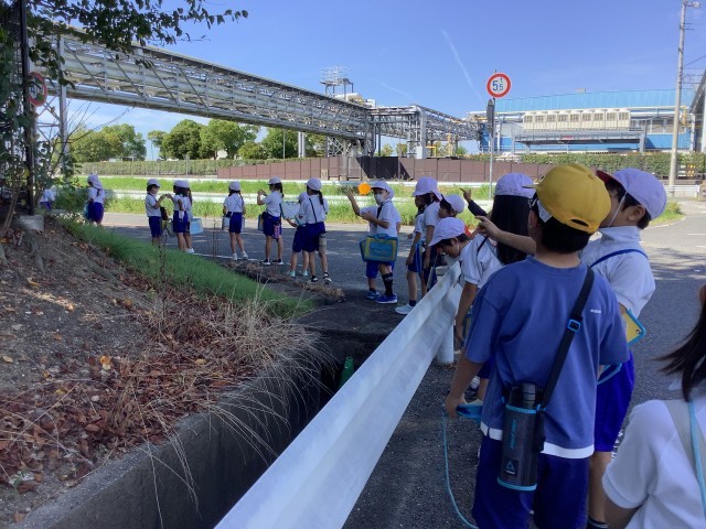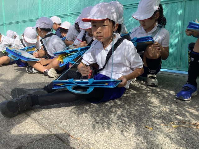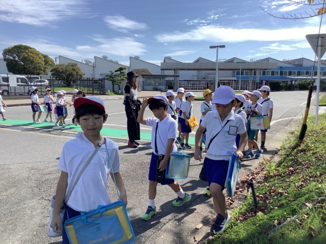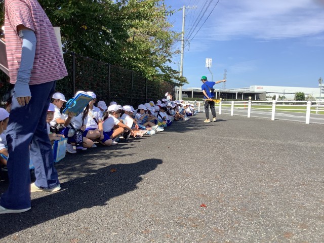 里町小学校の周りは、水田や梨畑などの農地ばかりでなく、多くの工場が建ち並んでいます。その理由については、これから先に勉強すると思います。2年生の子たちは、学校の周りの様子について、気がついたことを熱心にメモしていました!