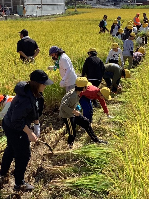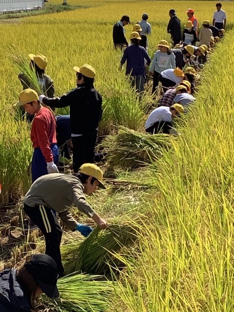 5月末に田植え体験をした田んぼで稲刈り体験をしました。
