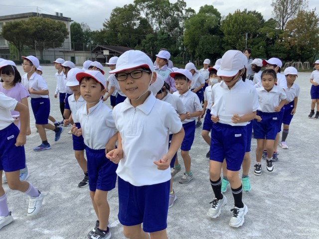 スポーツの秋ですね。今日は涼しい日でした。運動会に向け、3年生が運動場で練習しました。初めてのリレーの入退場は、まだうまくいかないところもあるようですが、これから練習を積み重ねて、しっかりできるようにがんばりましょう!
