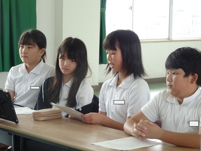 東山中学校、里町小学校、安城北部小学校、志貴小学校の4校の代表者による会議をオンラインで行いました。