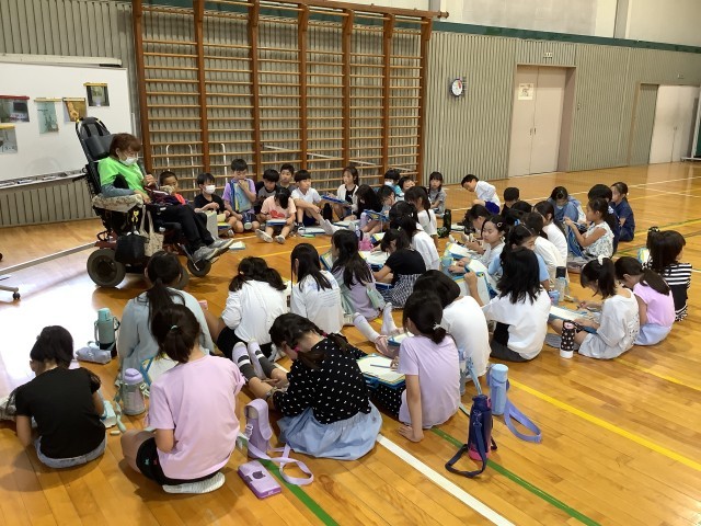 子どもたちは熱心にメモをとり、質問をしながら障害への理解を深めました。