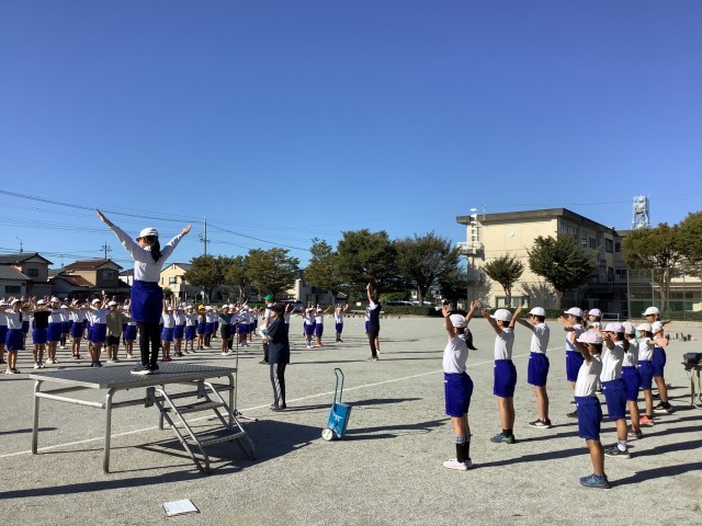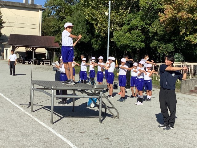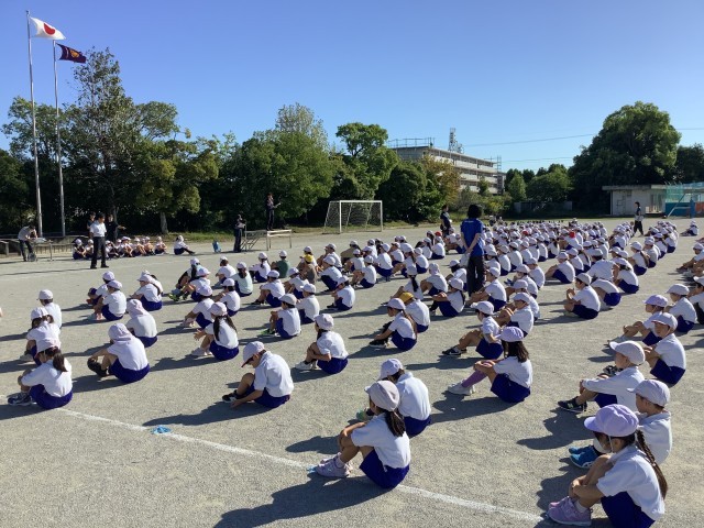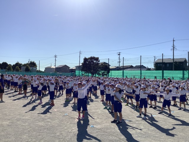 澄みわたる秋空のもと、1回目の全校練習をしました。