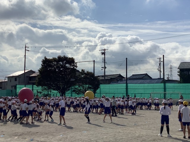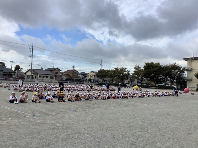 全校種目の大玉送りの進め方や入退場の仕方を練習しました。