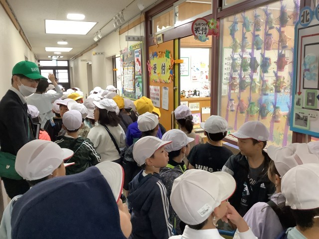 今回のたんけんは、黄コースへ出かけました。石橋団地には住宅が多く、幼稚園もありました。また、北部公民館の中を見学したり、職員さんに質問したりして、公民館の仕事についてよくわかりました。