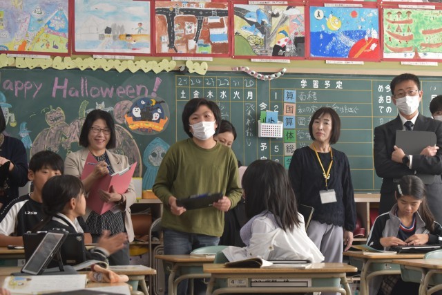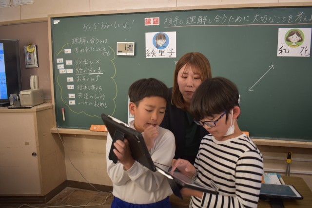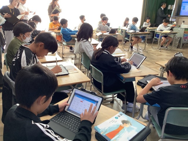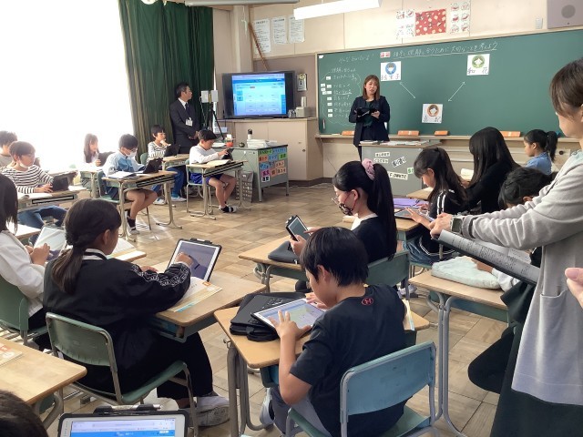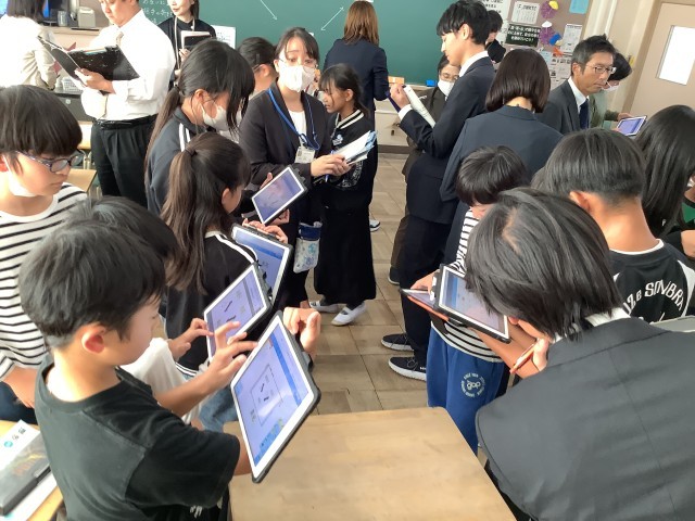 タブレットに自分の考えを入力し、みんなで考えを共有しました。