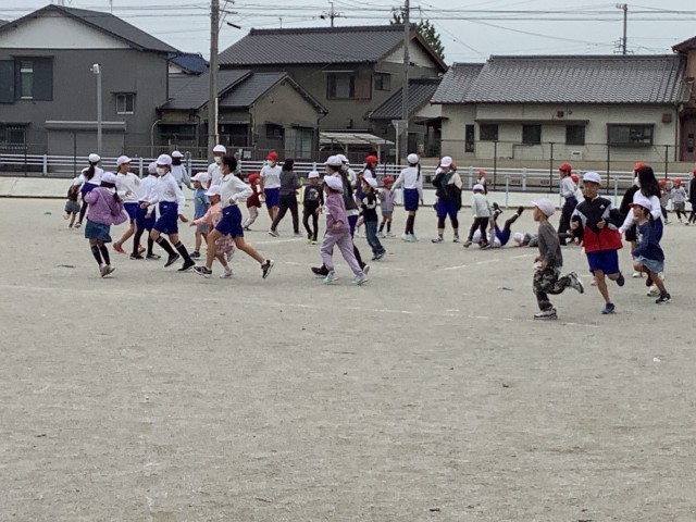 異学年のペアと一緒に鬼ごっこやドッジボールをしました。