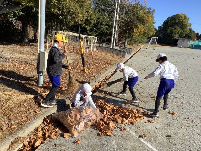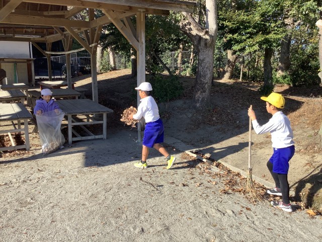 校庭の樹木の落ち葉の量も少しずつ減ってきました。