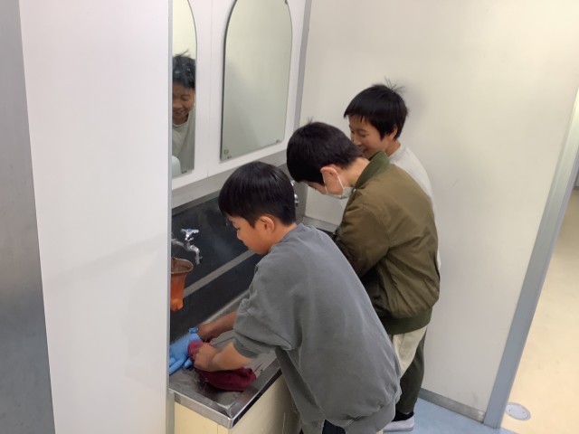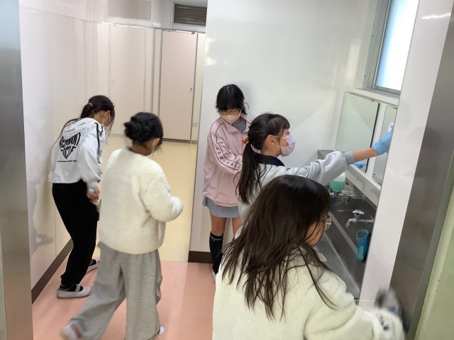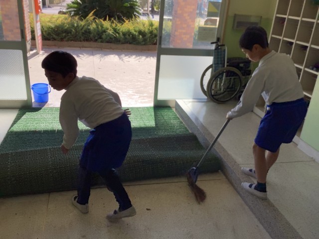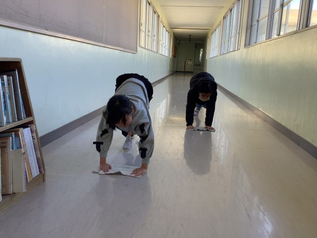 自分たちが使った教室や廊下、渡りや階段、玄関もみんなできれいにしています。
