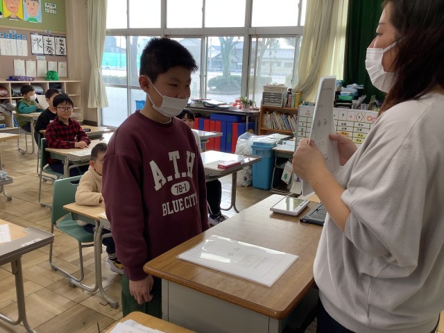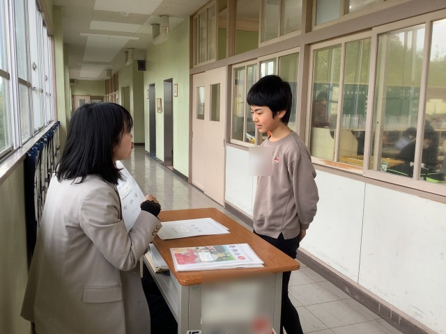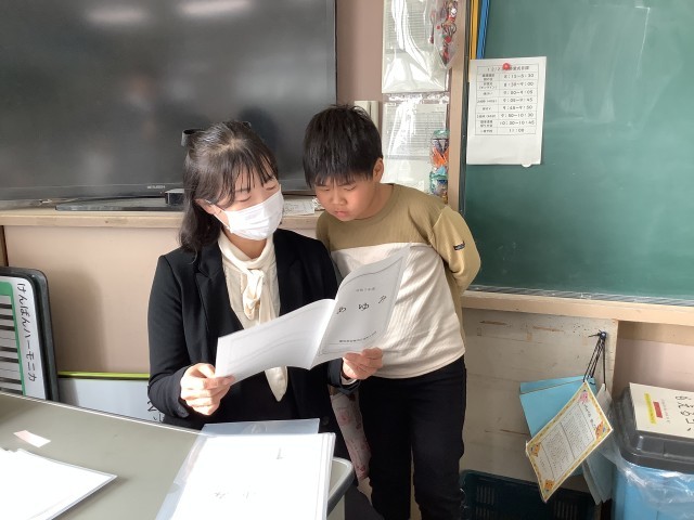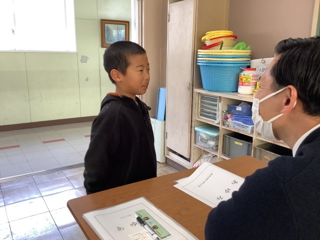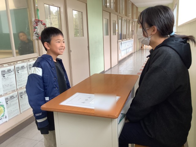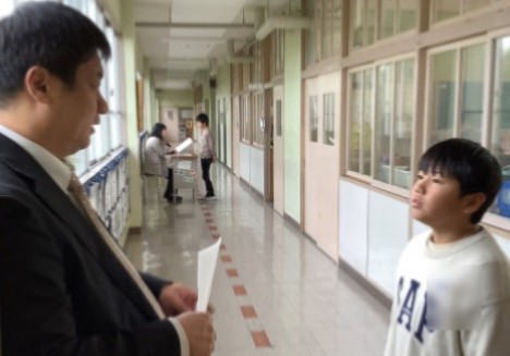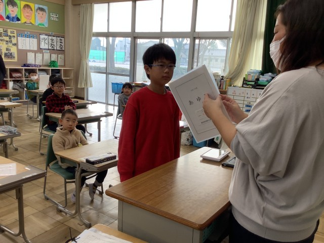 2学期にがんばったこと、成長したことを伝えながら「あゆみ」を一人一人に渡しました。