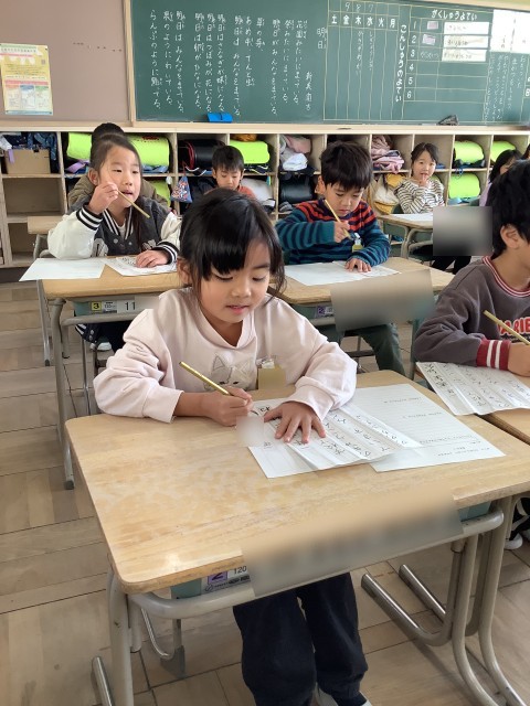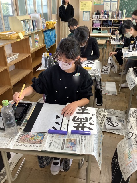 書き初め会がありました。どの子も真剣に、集中して取り組みました。