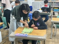 児童は自分の掃除場所でシェイクアウトし、危険な箇所を避けて運動場に避難しました。
