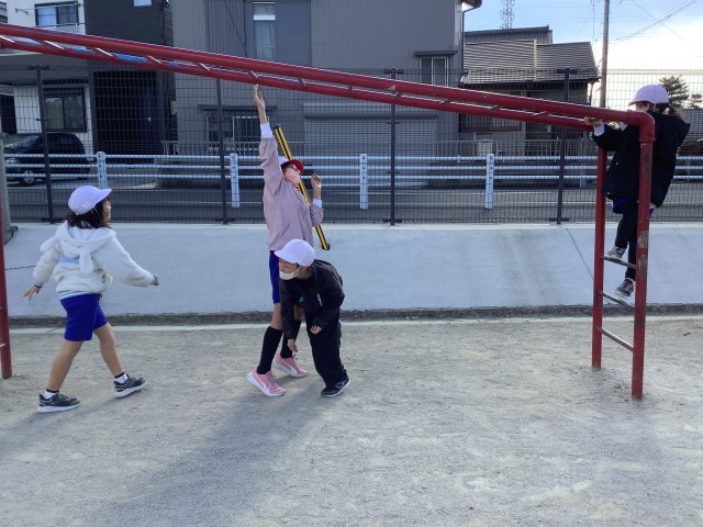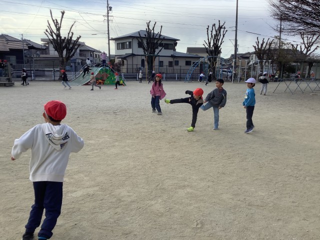 寒い日が続いていますが、昼放課に子どもたちは元気に外で遊んでいました。
