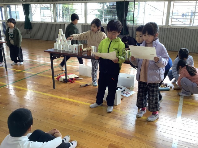 2年生は、自分たちが作ったおもちゃを1年生や保護者のみなさんに発表します。