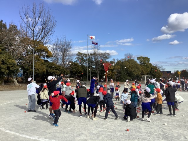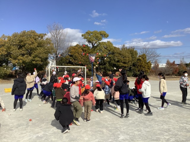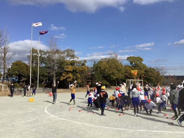 寒い時期に外で楽しく運動して体を温めることと、ペア学級で仲を深めることが目標です。