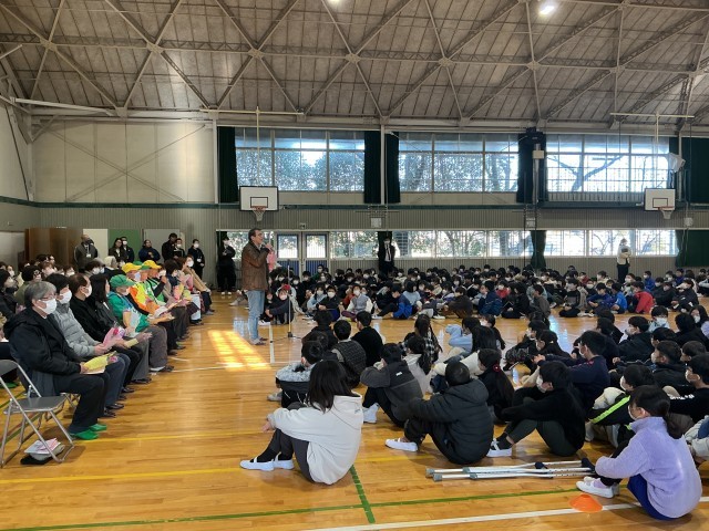 井畑町内会長さんの子どもの頃の思い出話もあり、体育館中に笑顔があふれました。