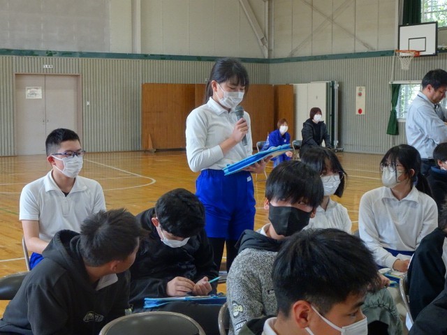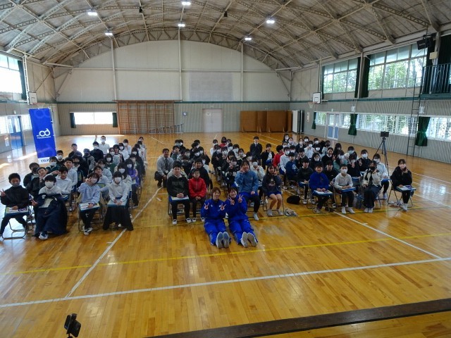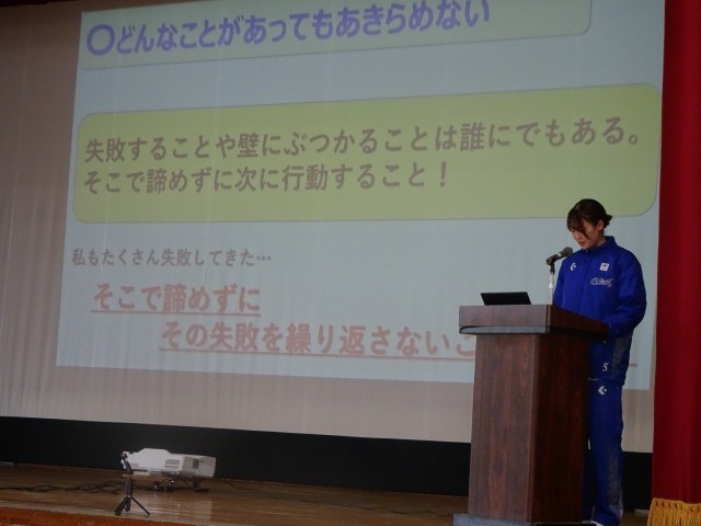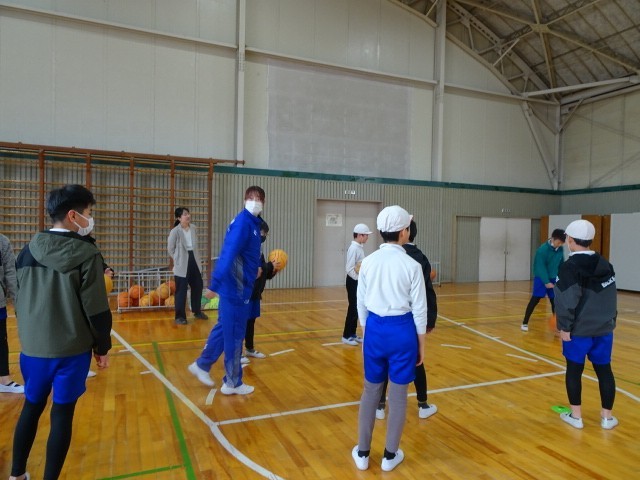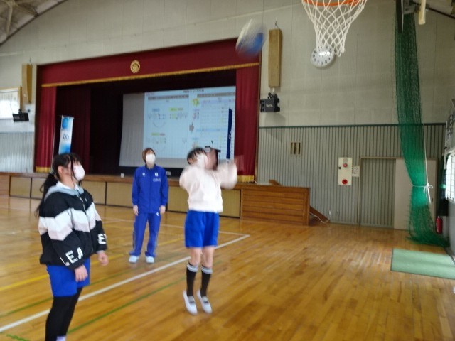 女子プロバスケットボールリーグで活躍されている選手をお招きし、「みらいの教室」として講話をしていただきました。一緒にバスケットボールをして心の距離が近づいた後、将来の夢の実現などについてお話を聴きました。