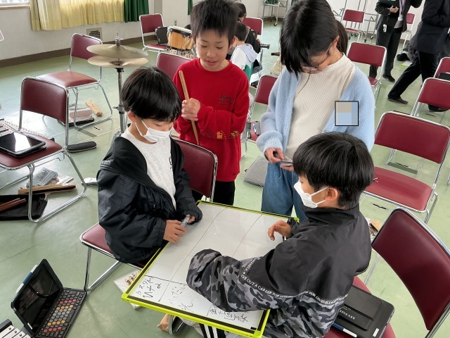 グループで音のつなげ方や重ね方を工夫しました。