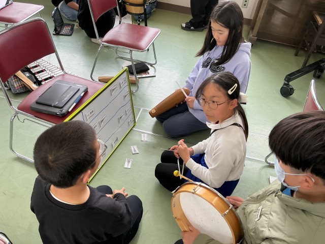 4年音楽 いろいろな音の響きを楽しもう 打楽器の音楽~音色や音楽の仕組みを生かして音楽をつくろう~