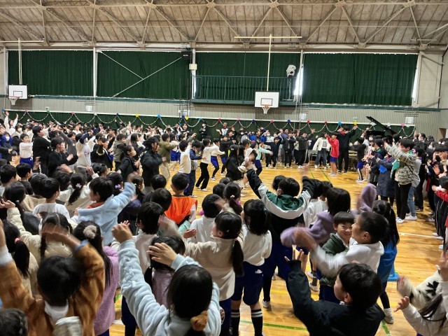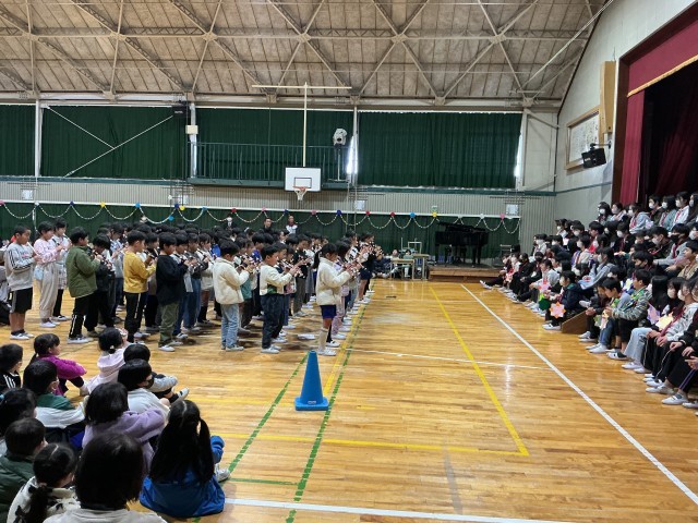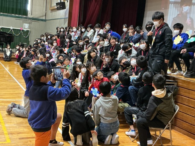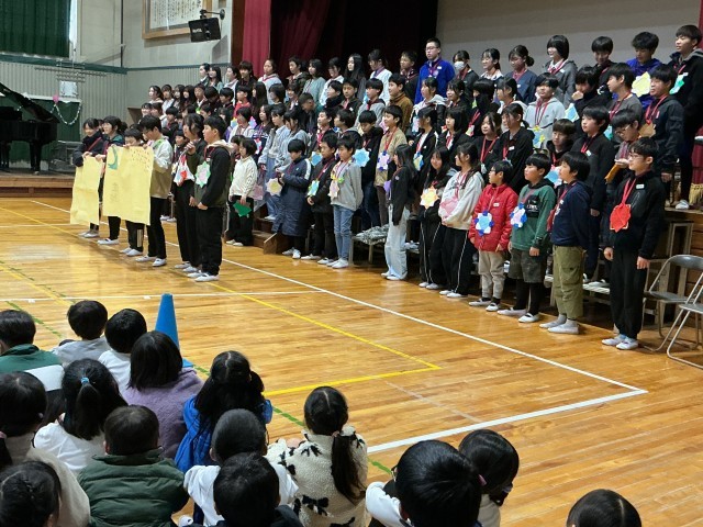 6年生から在校生へのエールとお礼の言葉があり、最後にみんなで校歌を歌いました。
