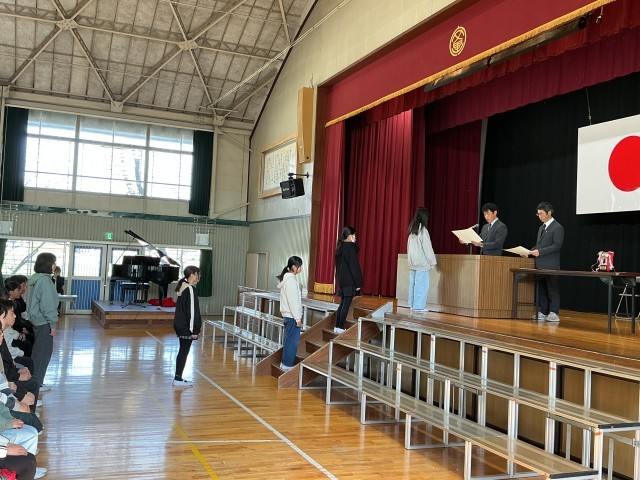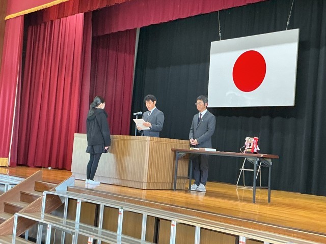 修了式後、安城市より卒業記念品(証書ホルダー)授与、PTAより卒業記念品(多機能ペン)授与がありました。
