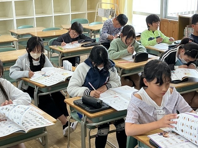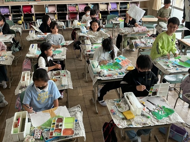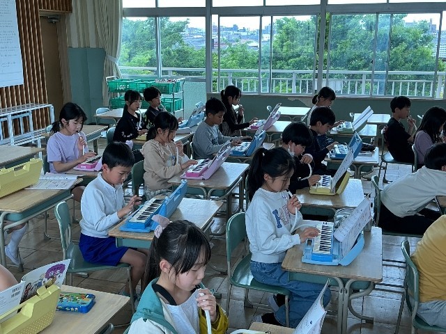 4年生の音楽・図工,5年生の外国語の授業のようです。