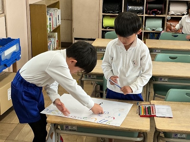 学校にあるいろいろな教室を先輩である2年生が1年生に教える機会です。