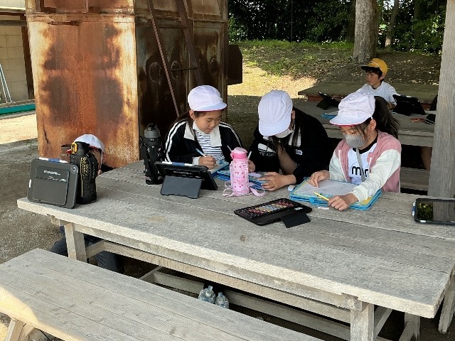 日差しが少しずつ強くなる中,木陰などで,がんばって描いています。