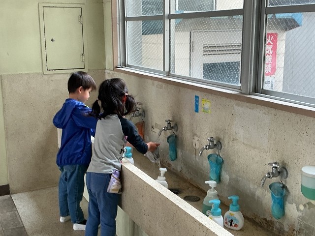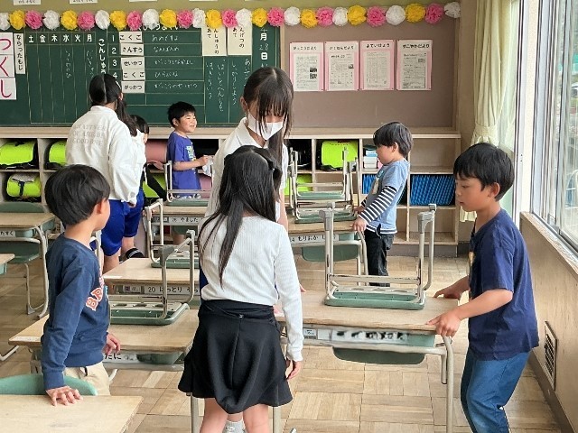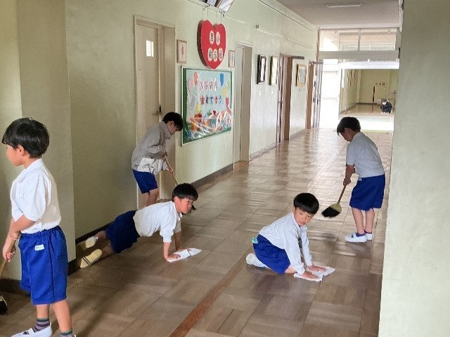 1年生の清掃には,6年生のお兄さん・お姉さんが手伝いに来てくれます。
