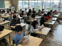 今日の天気は雨ですので、校舎内で過ごします。フッ素洗口や読書、学習をして、落ち着いた雰囲気で一日のスタートを切ることができました。もうすぐ運動会です。体調をくずさないようにしましょう。