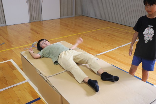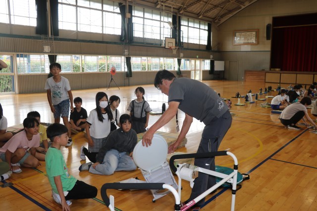 5年生が防災教室を行いました。新聞紙でスリッパを作ったり、ベットを作ったりしました。マンホールの場所を確認して、マンホールトイレの仕組みも学びました。防災倉庫も確認しました。実際に災害が起こったときのことを考えながら活動することができました。