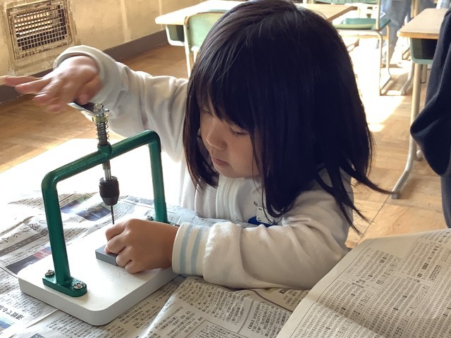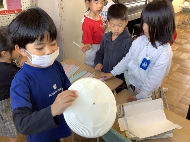 いろいろな材料を使って、楽器を作りました。お気に入りの音色を見つけました。