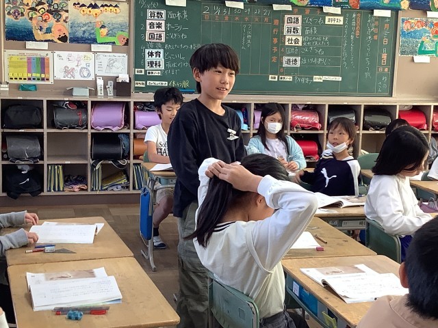 ごんぎつねを勉強しました。最後の「青いけむりは、何を表しているのかな」をみんなで考え、積極的に発言しました。