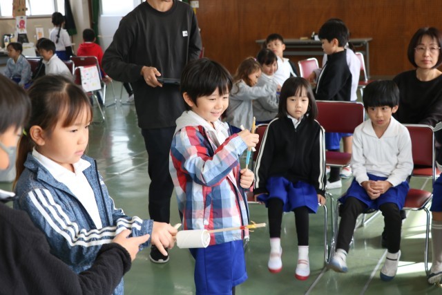 2年3組が、ゴムロケットランドに1年1組を招待しました。みんな笑顔があふれていました。