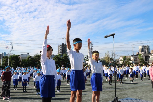 スポーツフェスティバルの予行演習を行いました。元気いっぱいな声が運動場に響きわたりました。本番が楽しみです。