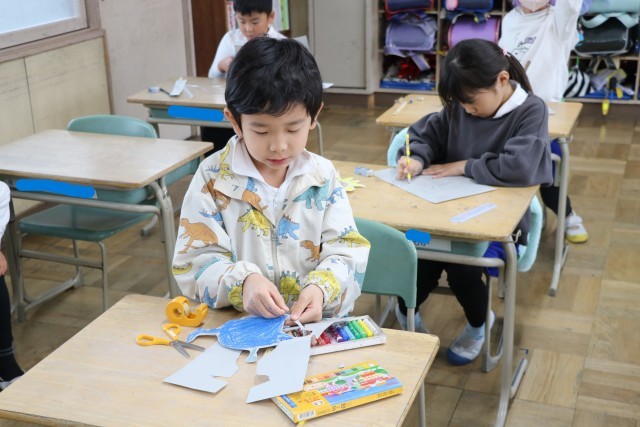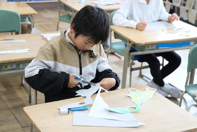 紙けん玉を作りました。みんな黙々と取り組んでいました。