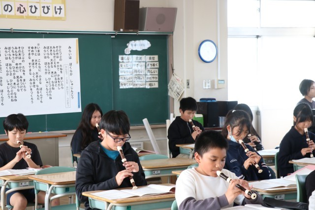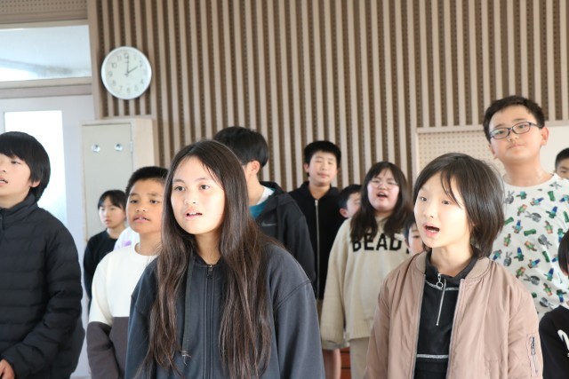音楽の授業で練習している曲をお互いに聞き合いました。感想の交流をし、温かい雰囲気に包まれました。最後に11月の歌の「未来は僕らが主人公」をみんなでがss狂しました。