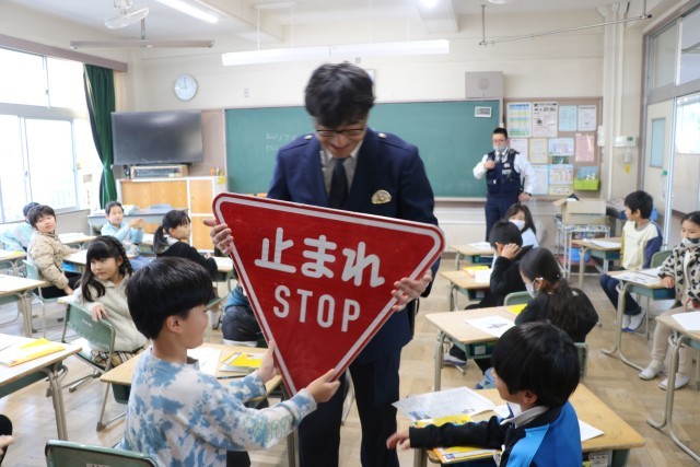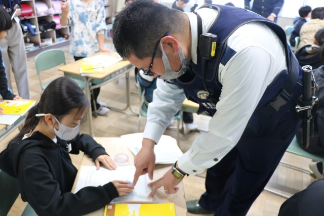 警察の方が学校に来て、出張授業を行いました。実際に指紋を取ったり、白バイになるなど体験を行いました。日頃の警察官の苦労を考えることもできました。
