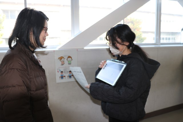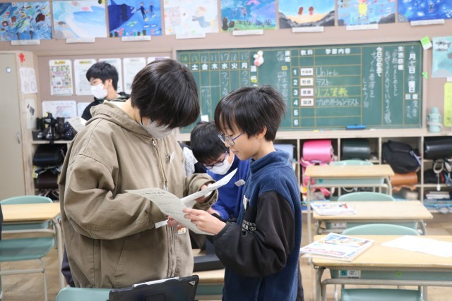 絶滅危惧種を救うためにどうしたらよいか、英文を自分たちで考え、ALTに聞いてもらいました。みんな真剣に取り組んでいました。