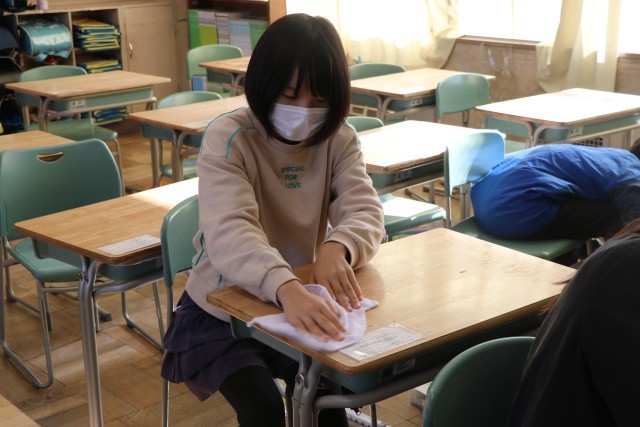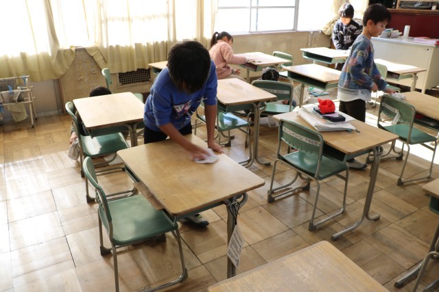 様々な学級で大掃除を行いました。きれいな教室で終業式を迎えます。