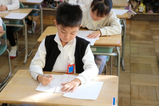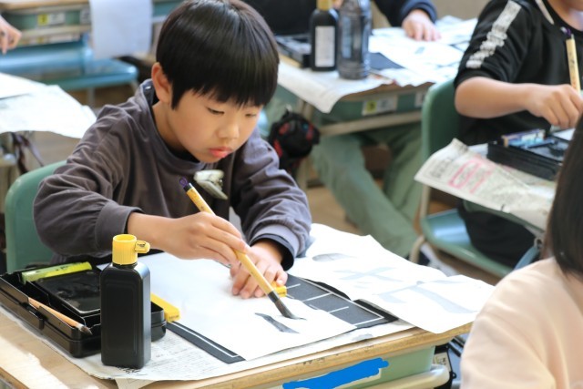 書初め会を行いました。誰一人話をしない緊張感の中、みんな一生懸命取り組みました。