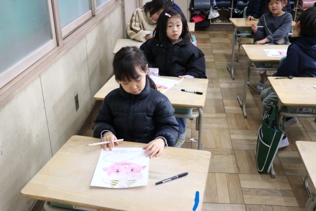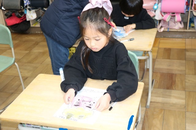 「ハサミの練習をしよう」を行いました。オニを切り取り、自分の弱いところを追い出す掲示物を作りました。