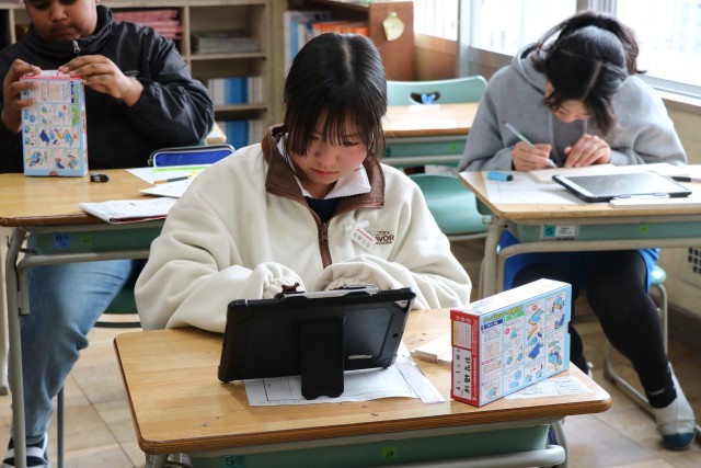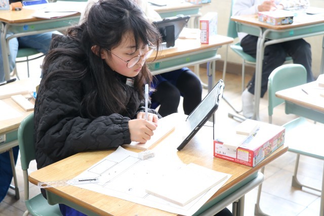 卒業制作の「セロテープカッター」を作っています。みんな黙々と取り組んでいました。