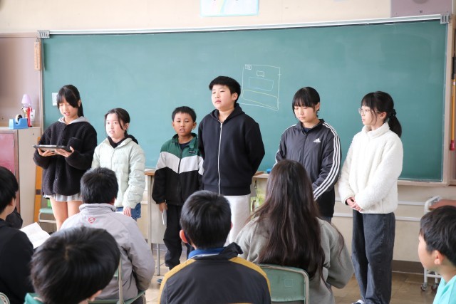 「地震は必ずやってくる」をテーマに行っています。今まで様々な体験や調べ学習を行ってきました。そのまとめを学習発表会で披露します。