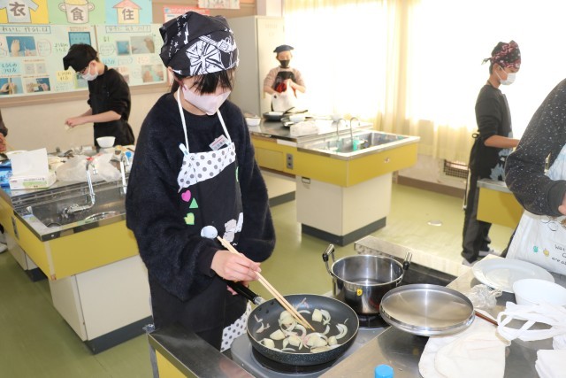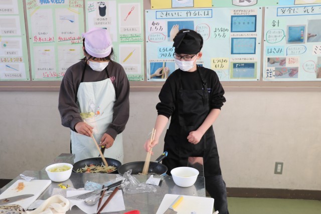 ジャーマンポテト、青菜とコーン、ベーコンの油炒めを作りました。栄養のバランスを考えて工夫して作りました。準備から後片付けまできちんとできました。