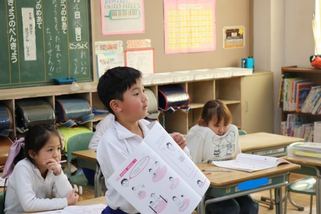 命の冊子を使って、「からだをきれいにするために」を行いました。うがいや手洗い、風呂に入ることなが大切なことに気付きました。