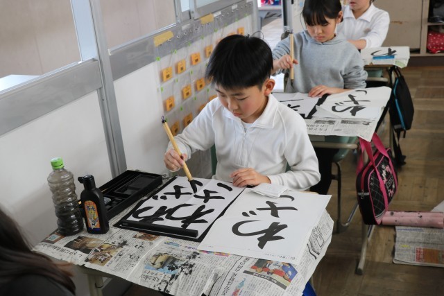 「わざ」を清書しました。みんな真剣で、黙々と取り組むことができました。