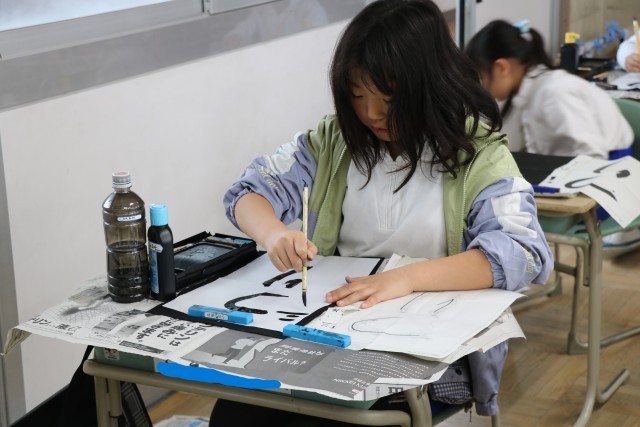 「つり」を書きました。誰一人話をする児童はおらず、真剣に取り組んでいました。