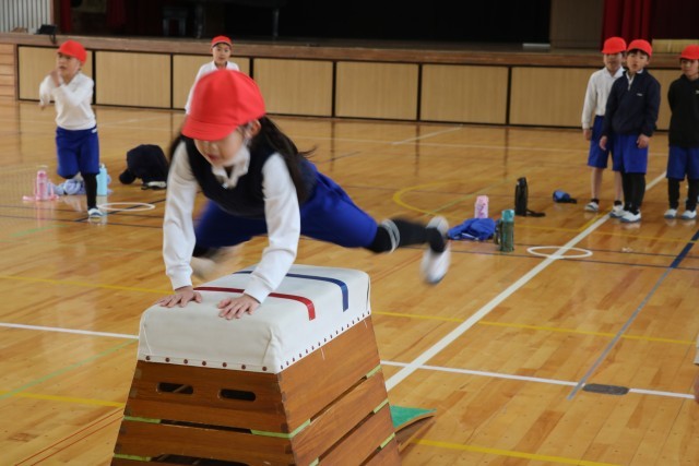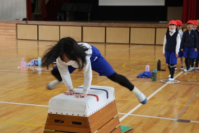 開脚跳びを行いました。自分の挑戦する段を選び、進んで取り組みました。