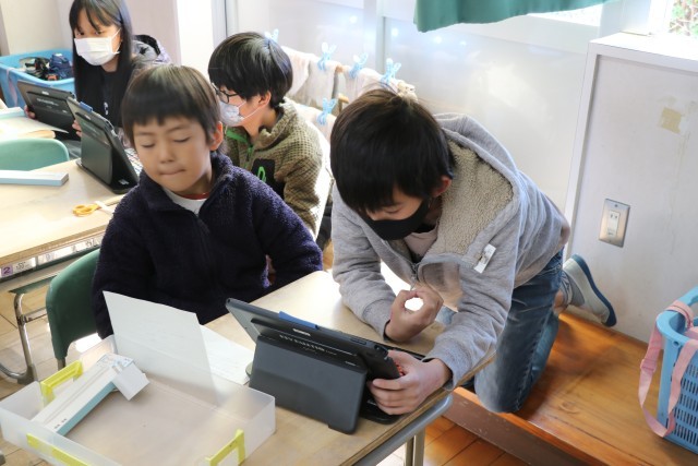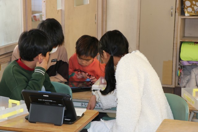 6年生と一緒にタブレットの更新をしました。みんな仲良く更新をしていました。