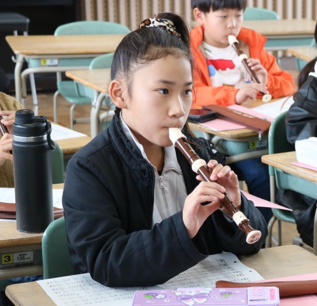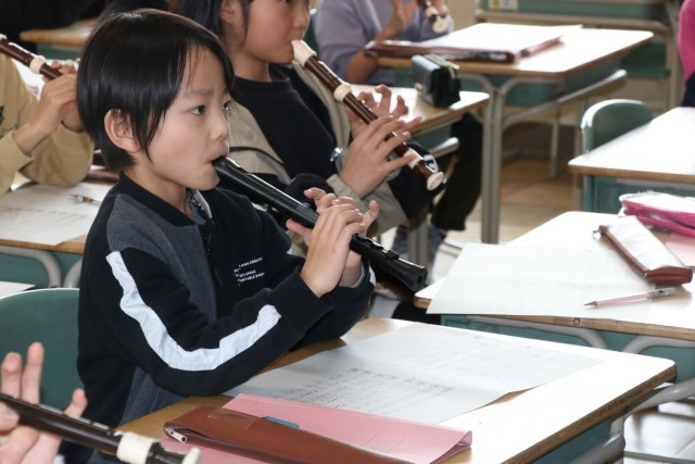 リコーダーで「エーデルワイス」を吹きました。みんな真剣に取り組んでいました。